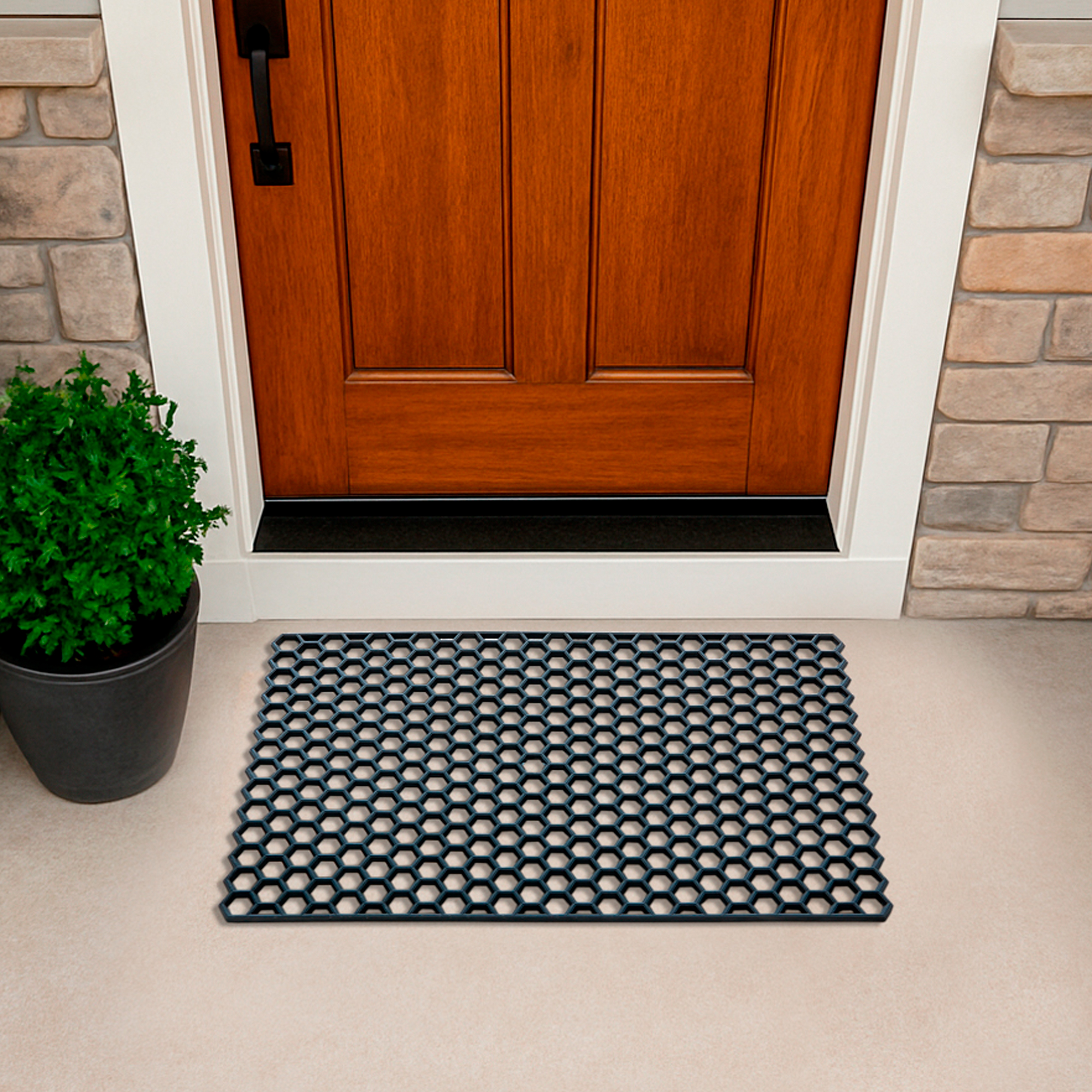 Disponíveis em formato meia lua ou retangular, adaptam-se facilmente a diferentes áreas. O PVC garante alta durabilidade, fácil manutenção e resistência às condições exteriores, mantendo o tapete sempre funcional e apelativo.